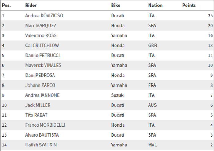 Berikut poin dan klasemen lengkap di seri pertama MotoGP 2018, yuk simak.