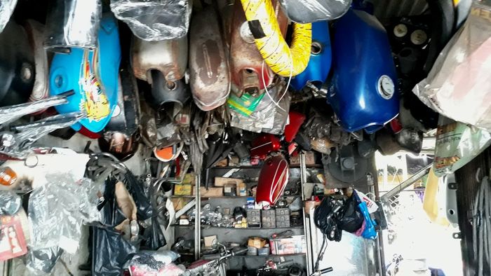 Bengkel ini juga punya beberapa part orisinal seperti tangki Suzuki A100, shockbreaker Honda C700 sampai mesin Honda S90.
