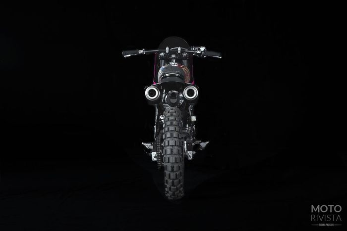 Untuk memperkuat tampilan ikut dipasang panel samping yang juga berfungsi sebagai pembatas knalpot dan bodi, serta sebuah knalpot minimalis di bagian belakang.