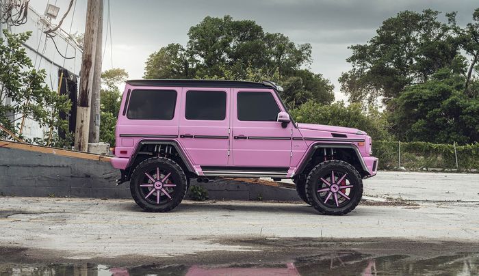 Hampir semua permukaan eksterior Mercedes-Benz G-Class G500 4×4² ini ditutupi dengan warna pink ini.