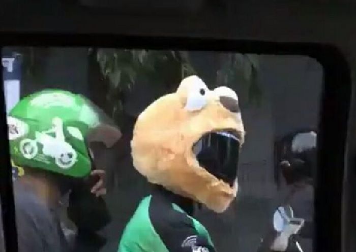Duh, ada saja pengendara motor yang memakai helm dengan gaya unik bahkan cenderung nyeleneh.