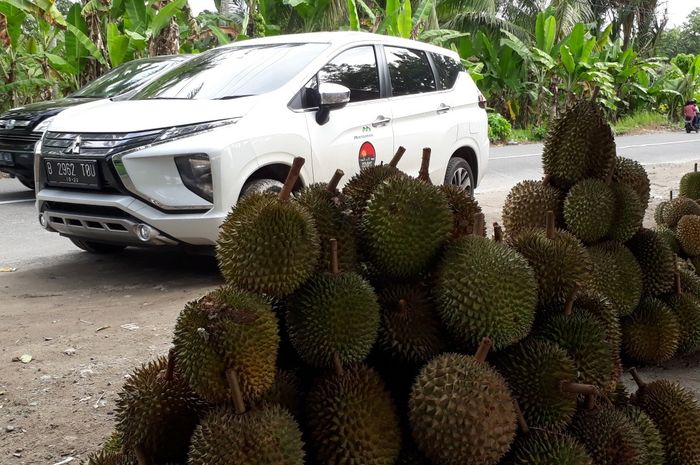 Di sepanjang jalan banyak penjual menjajakan buah 'raja'.