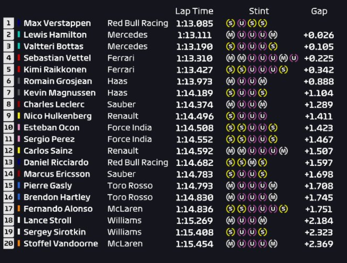 Pada akhirnya, Max Vertappen berhasil jadi yang tercepat, mengalahkan Lewis Hamilton dan Valtteri Bottas.