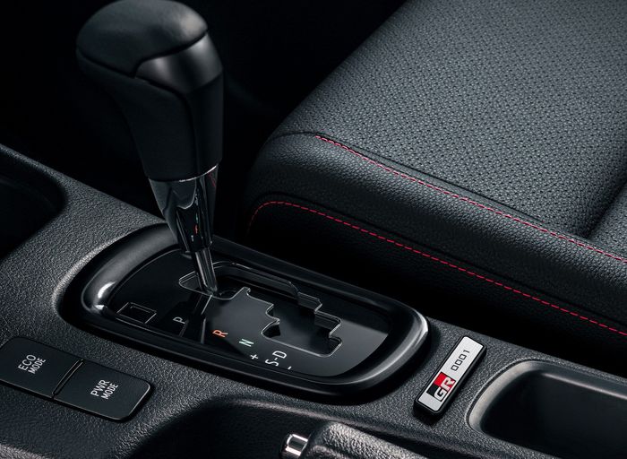 Masuk ke kabin kita akan menemukan jok kulit hitam dengan jahitan kontras warna merah dan logo GR bersulam di sandaran kepala depan.