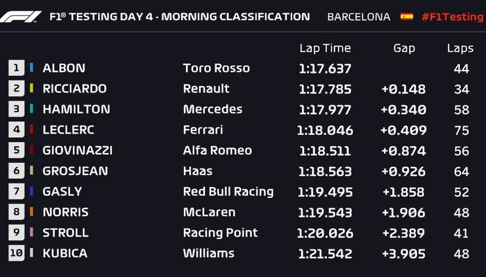 Leclerc dan pembalap Alfa Romeo, Antonio Giovinazzi, melengkapi lima besar di depan pembalap Haas, Romain Grosjean.