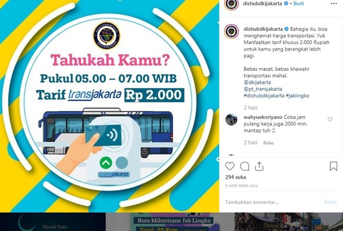 Dalam IG DishubDkiJakarta disebutkan tarif khusus ini untuk perjalanan pagi.