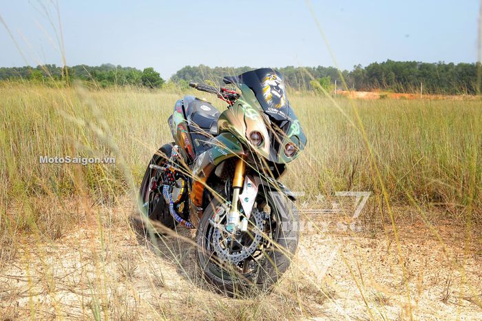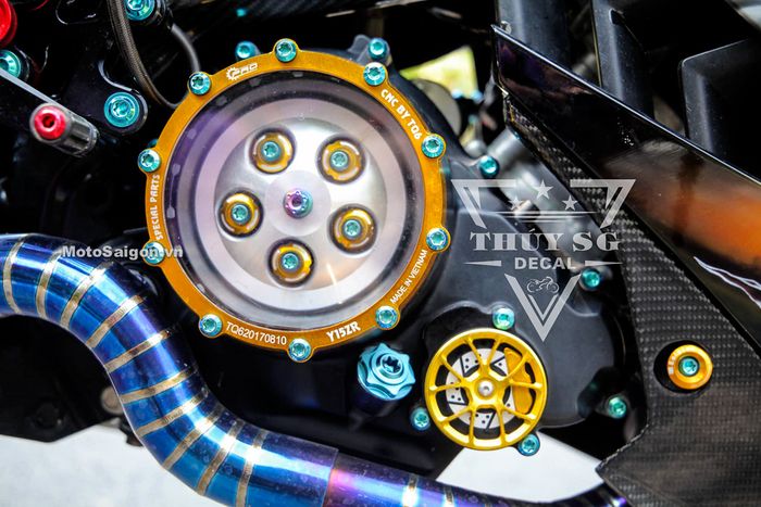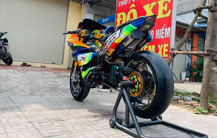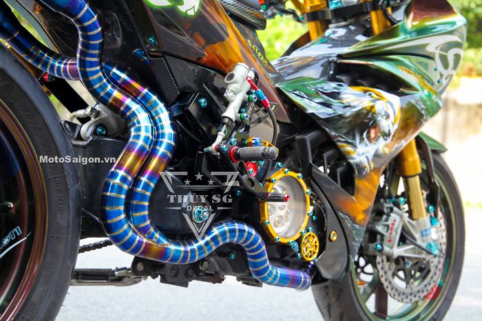 Bagian berikutnya yang mencuri perhatian adalah knalpotnya yang leher titanium dan meliuk-liuk ke bawah buntutnya.