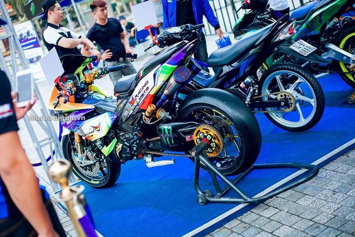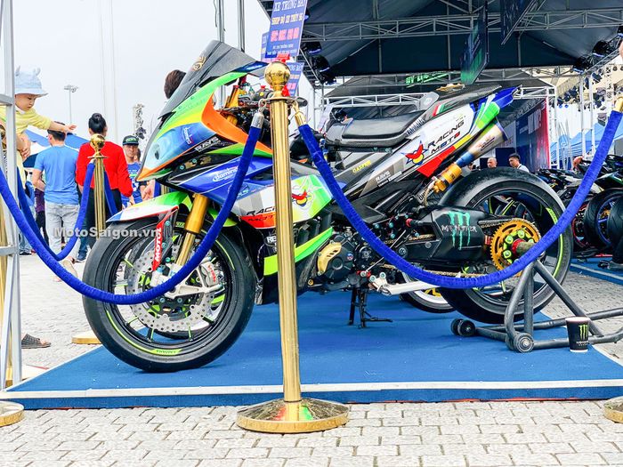 Untuk mufflernya ada dua sekaligus dan menggunakan produk XMVR1 yang pastinya memberikan suara gahar.