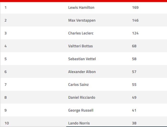 Juara dunia empat kali itu hanya unggul 1 point dari pendatang baru tim Red Bull, Alexander Albon.