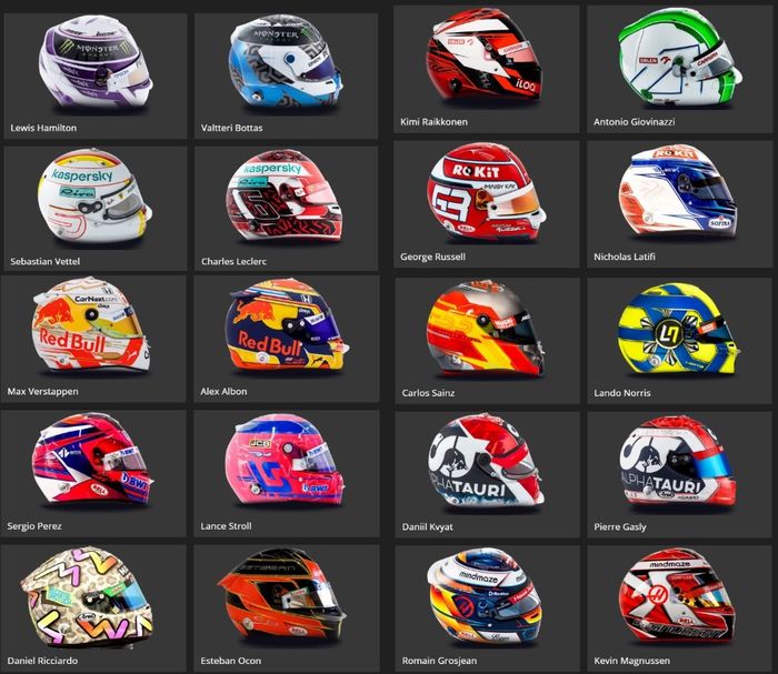 Berikut penampilan desain helm para pembalap F1 2020. Favorit sobad GridOto yang mana nih?