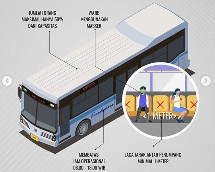 Pada bus, jumlah orang maksimal hanya 50 persen dari kapasitas penumpang.