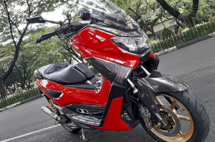 Aura racy semakin kuat dengan warna merah Ferari pada bagian body halus Yamaha NMAX modifikasi ini.