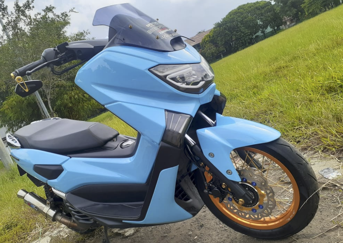 Hal pertama yang langsung menarik perhatian yaitu baju alias bodi Yamaha NMAX yang kena repaint biru cerah.