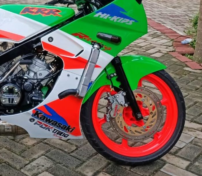"Segitiga setang atas bawah pakai orisinal Kawasaki Serpico terus tabung sokbreker depannya saya pakai Kawasaki Ninja RR dan saya pasang stabilizer sokbreker juga," jelas Hengkie.