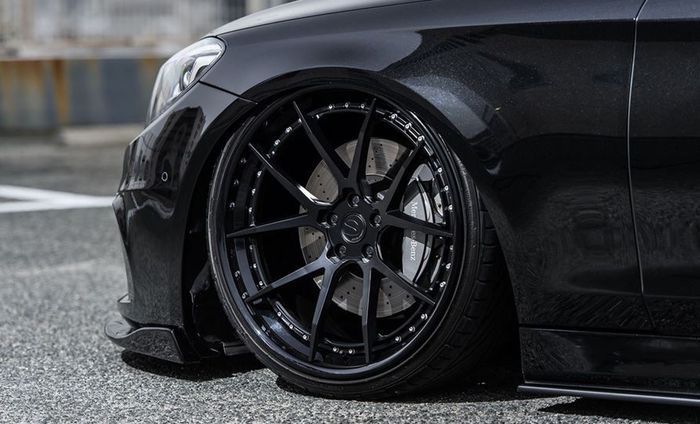 Untuk pelek yang dikenakan S-Class ini adalah edisi Aimgain GIIM Forged ukuran 22 inci warna hitam dibalut ban profil tipis.
