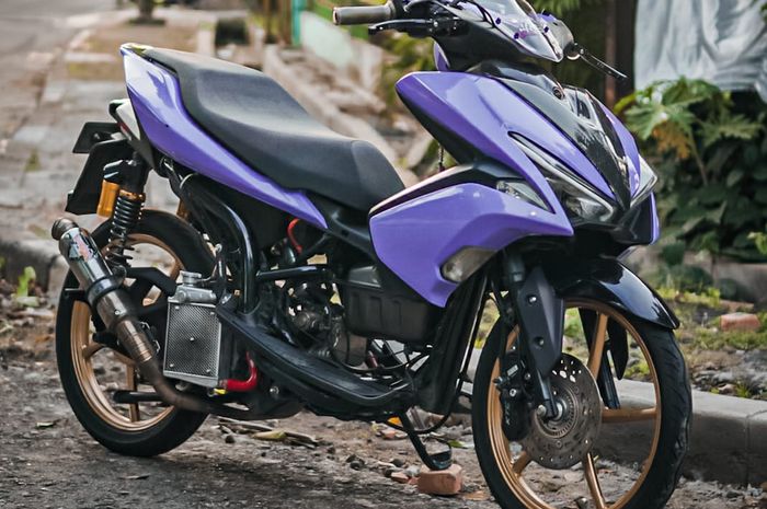 "Biar unik aja sih pemilihan warna ini, dan makin sporty gue kombo beberapa part karbon kevlar salah satunya dasi depan. Kalau bodi bawah gue coak dan copot buat ngurangi bobot motor dan hambatan udara," sambung Zidan.