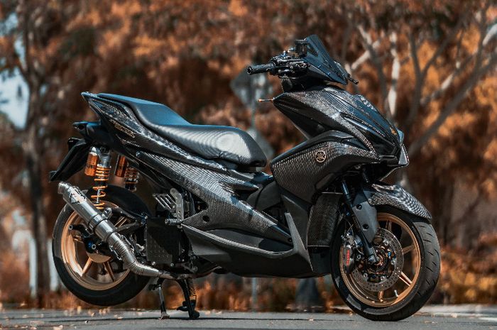 GridOto.com- Yamaha Aerox bersisik karbon, ubahan kaki-kakinya racing banget.