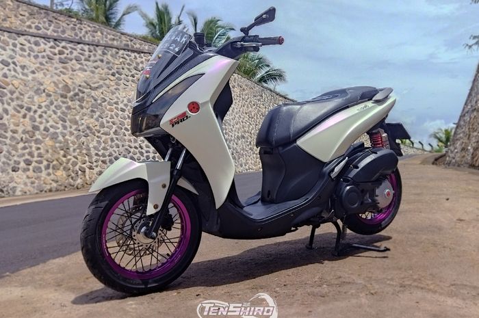 Jangan kira standar, tampang Yamaha Lexi ini pun dibuat menarik dengan bodi yang dicat ulang berkelir putih plus efek lembayung violet.