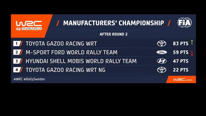 Sementara Hyundai anteng di posisi ketiga, meskipun mendulang lebih banyak poin dibandingkan M-Sport Ford yaitu sebanyak 34 poin.