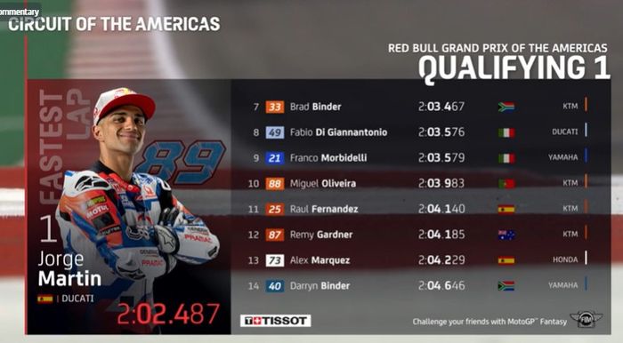 Berikut hasil Q2 MotoGP Amerika 2022 :