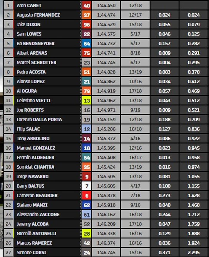 Posisi tersebut berhasil Canet pertahankan hingga FP1 Moto2 Catalunya 2022 berakhir.