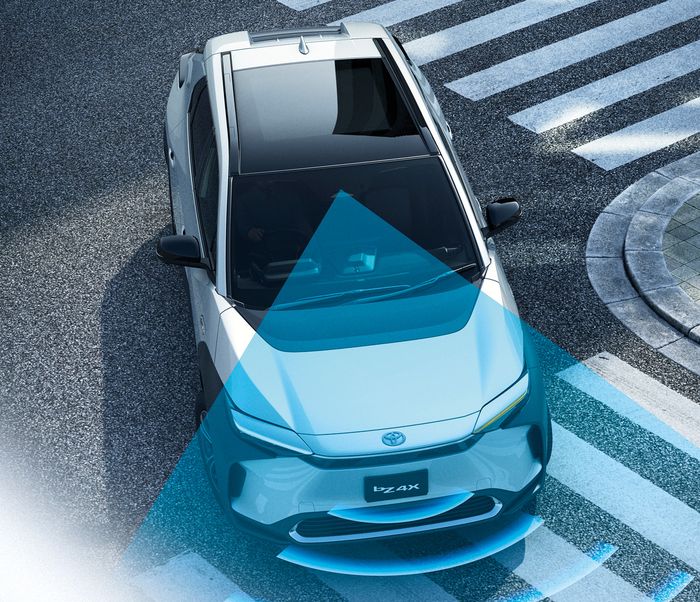Saat di persimpangan jalan, PCS di Toyota bZ4X juga bisa mendeteksi mobil yang belok atau jalan lurus.