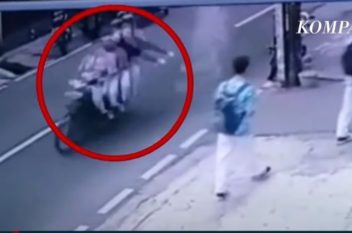 GridOto.com- Dua orang pelajar yang sedang berjalan disiram cairan oleh pengendara motor bebek.