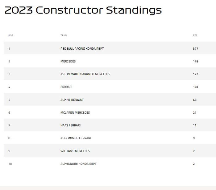 Sedangkan di klasemen konstruktor, Red Bull masih terlalu jauh untuk dikejar oleh Mercedes, Aston Martin ataupun Ferrari.