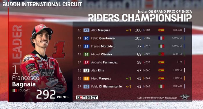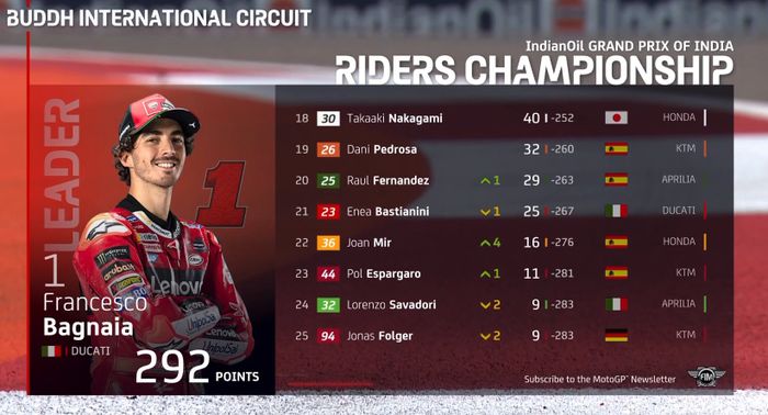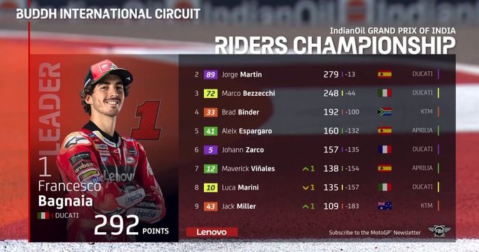 Berikut tabel klasemen sementara MotoGP 2023: