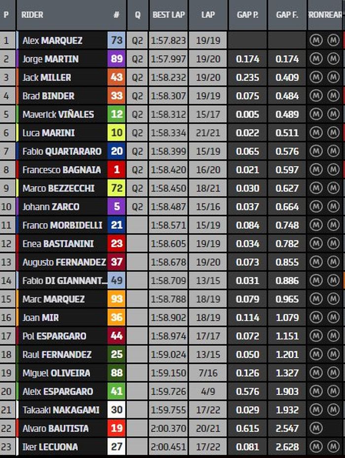 Berikut tabel hasil sesi practice MotoGP Malaysia 2023: