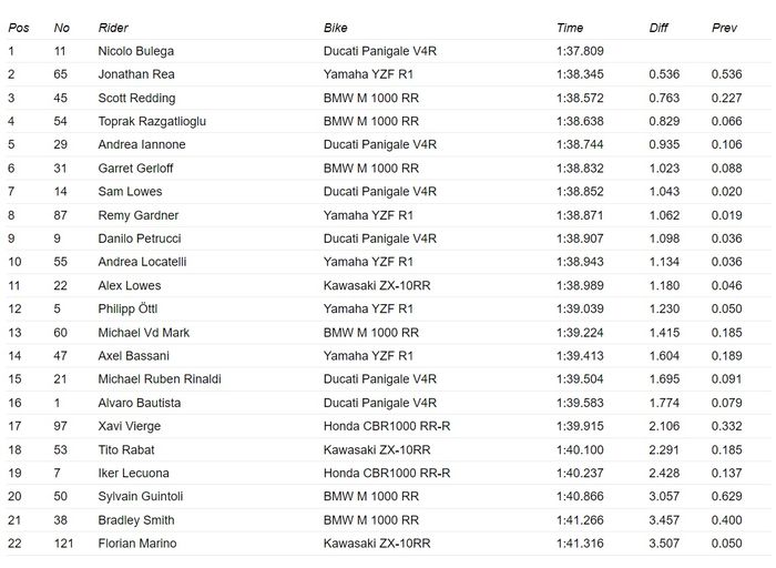 Iannone tampil cukup kencang dengan menempati peringkat lima, meski tertinggal 0,935 detik dari Bulega.