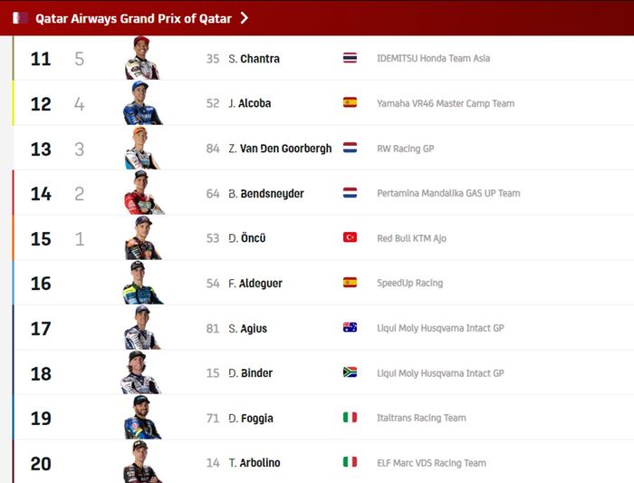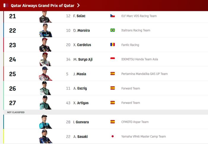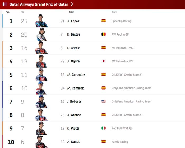 Nah berikut hasil lengkap race Moto2 Qatar 2024 :