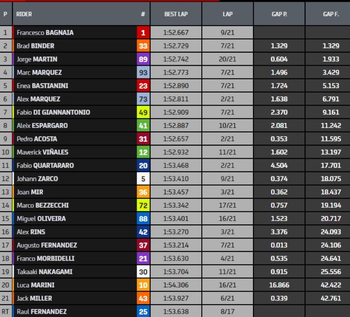 Balapan sendiri sempat terganggu dengan masalah yang dialami Raul Fernandez usai warm up lap.