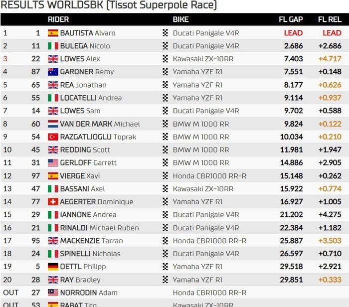 Berikut hasil superpole race WorldSBK Belanda 2024: