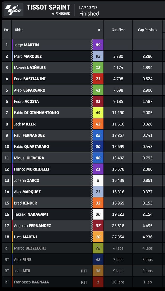 Setelah start yang sangat buruk itu, Bagnaia malah semakin melorot dan kesulitan mempertahankan ritmenya.