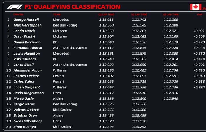 Berikut hasil kualifikasi F1 Kanada 2024: