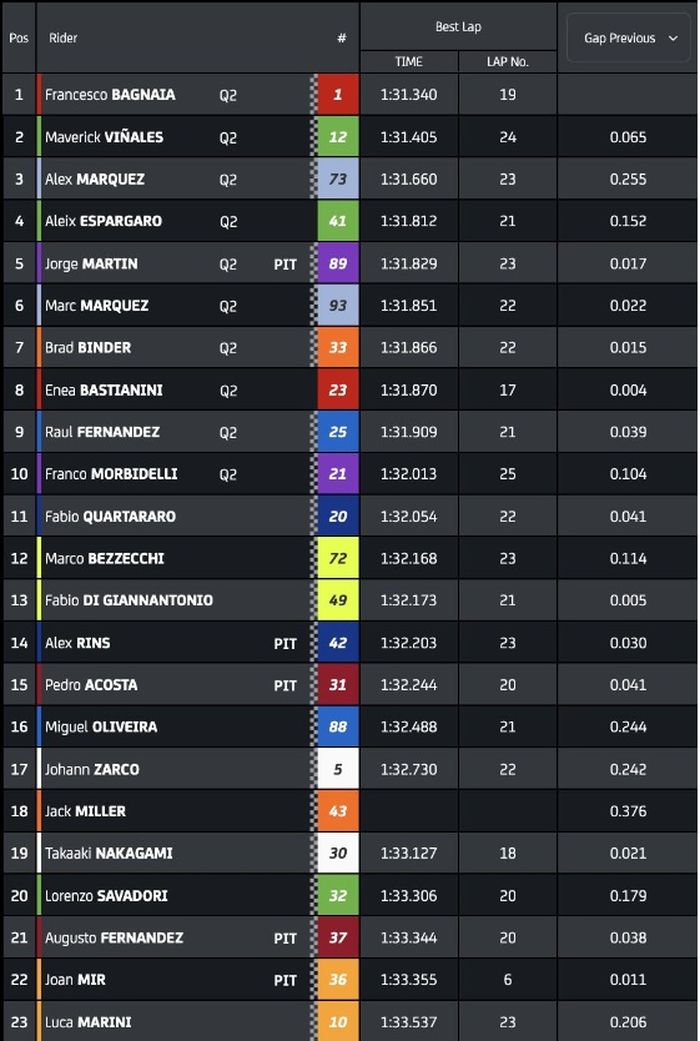 Hanya sesekali ada pembalap yang melaju melebar, seperti Marco Bezzecchi yang tampaknya masih mengalami kesulitan adaptasi dengan Desmosedici GP23.