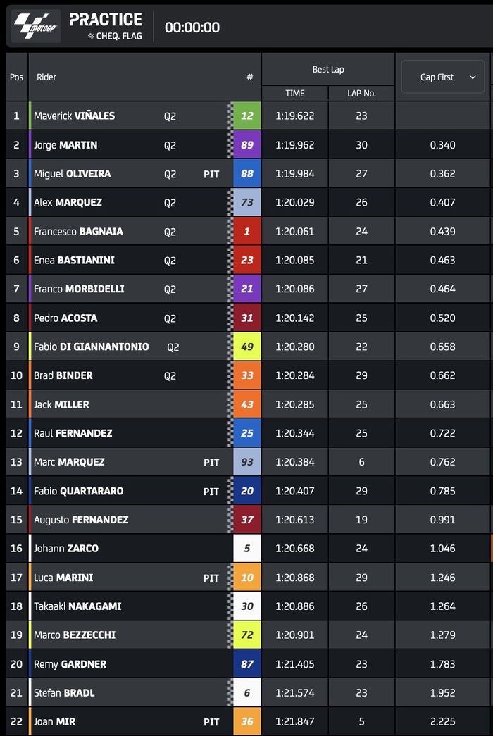 Berikut tabel hasil practice MotoGP Jerman 2024: