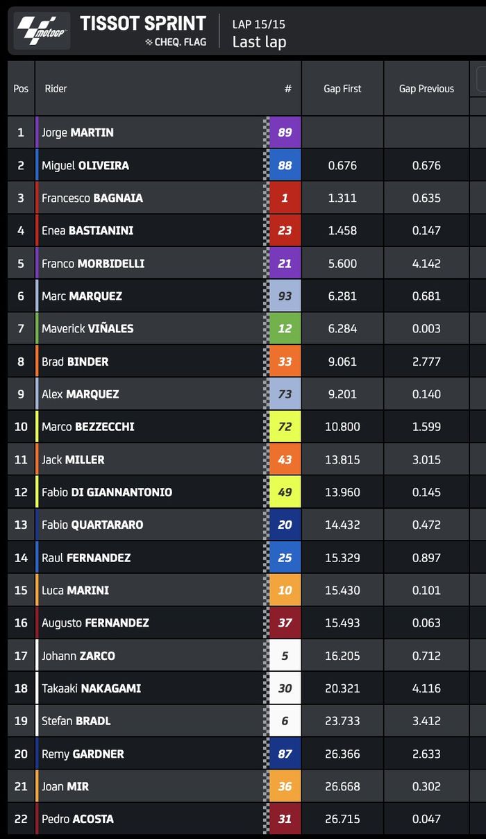 Berikut hasil balapan sprint MotoGP Jerman 2024: