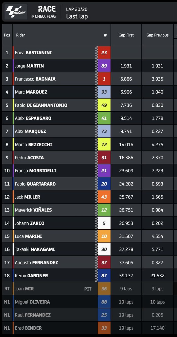 Selanjutnya ada Alex Marquez, Marco Bezzecchi, Pedro Acosta dan ditutup dengan Franco Morbidelli yang melengkapi 10 pembalap teratas.