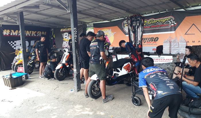 Para mekanik dari masing-masing tim tampak mempersiapkan tunggangan andalannya yang akan diturunkan di masing-masing kelas.