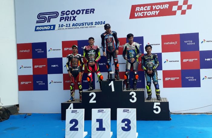 Dalam kelas ini ada Egi Arista joki wanita dari tim RC Garage asal Bandung, Jawa Barat yang perdana tampil di Scooter Prix 2024 berhasil naik podium.