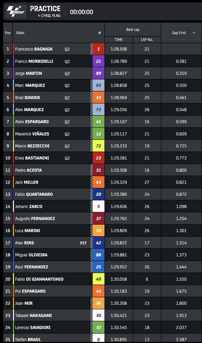 Misalnya yang dialami oleh duo VR46 Racing Team, Fabio Di Giannantonio dan Marco Bezzecchi, serta Pedro Acosta dan ditutup oleh Enea Bastianini.