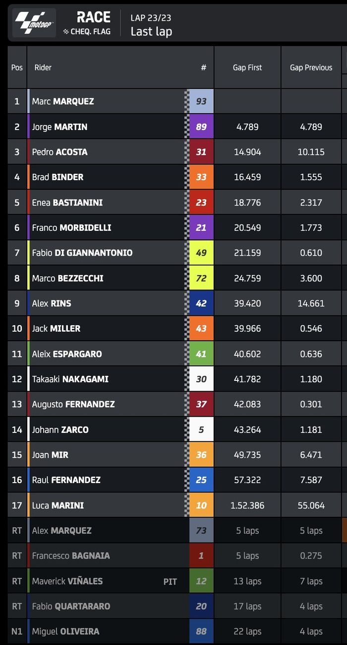 Podium dua berhasil diamankan Jorge Martin yang tampil sangat bagus sepanjang balapan, meski tidak bisa mengejar Marc Marquez.