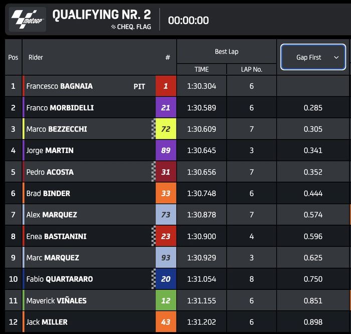 Berikut hasil kualifikasi MotoGP San Marino 2024: