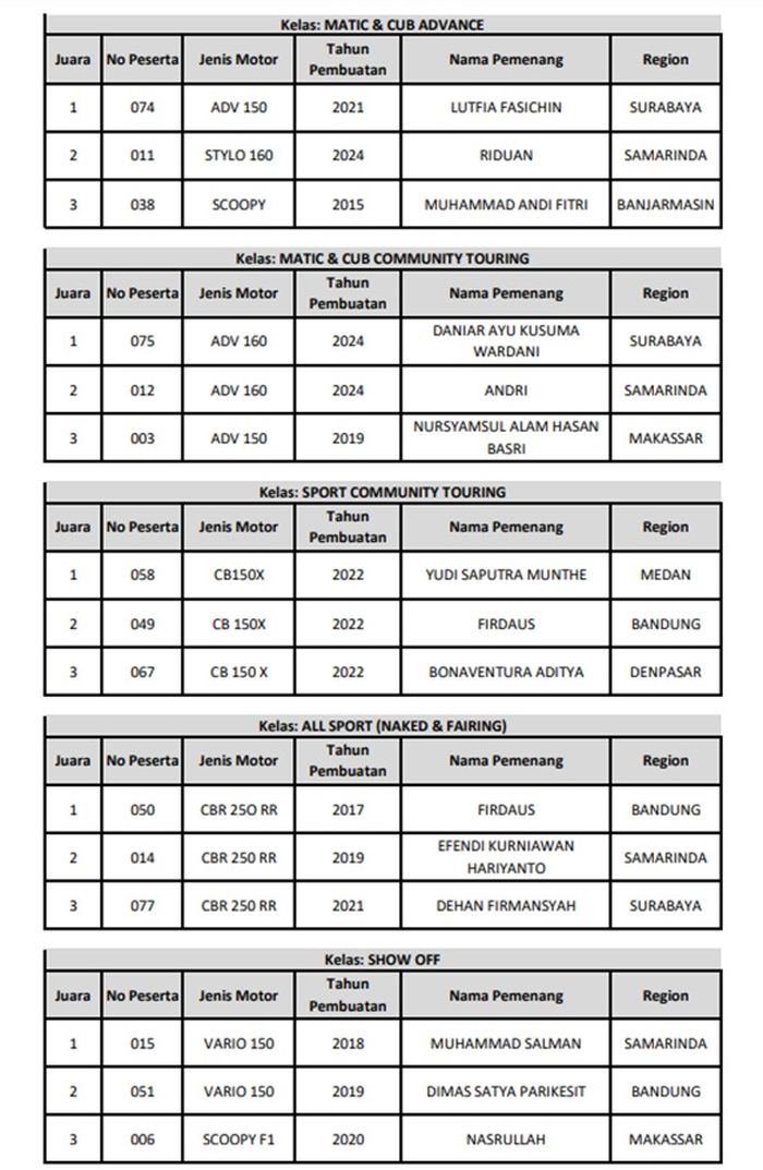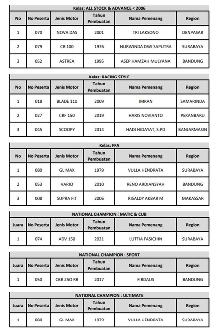 Selain itu, untuk motor Honda seluruh tahun produksi bisa ikut kelas baru yaitu Racing Style bagi modifikator yang suka dengan genre modifikasi balap.