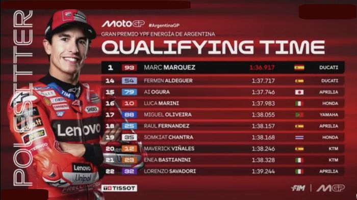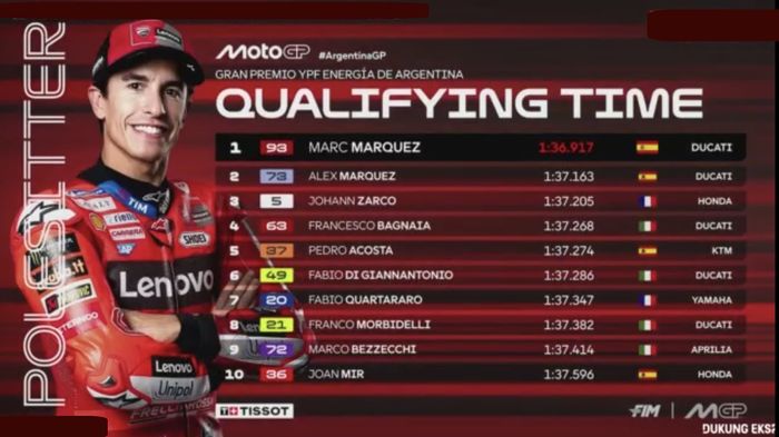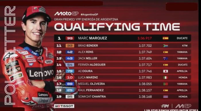 Berikut hasil lengkap sesi kualifikasi MotoGP Argentina :