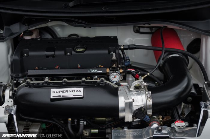 Mesin empat silinder K24 diterapkan pada mobil ini, blok 2.400 cc menggunakan piston 87a Arias dan setang seher Eagle ESP.